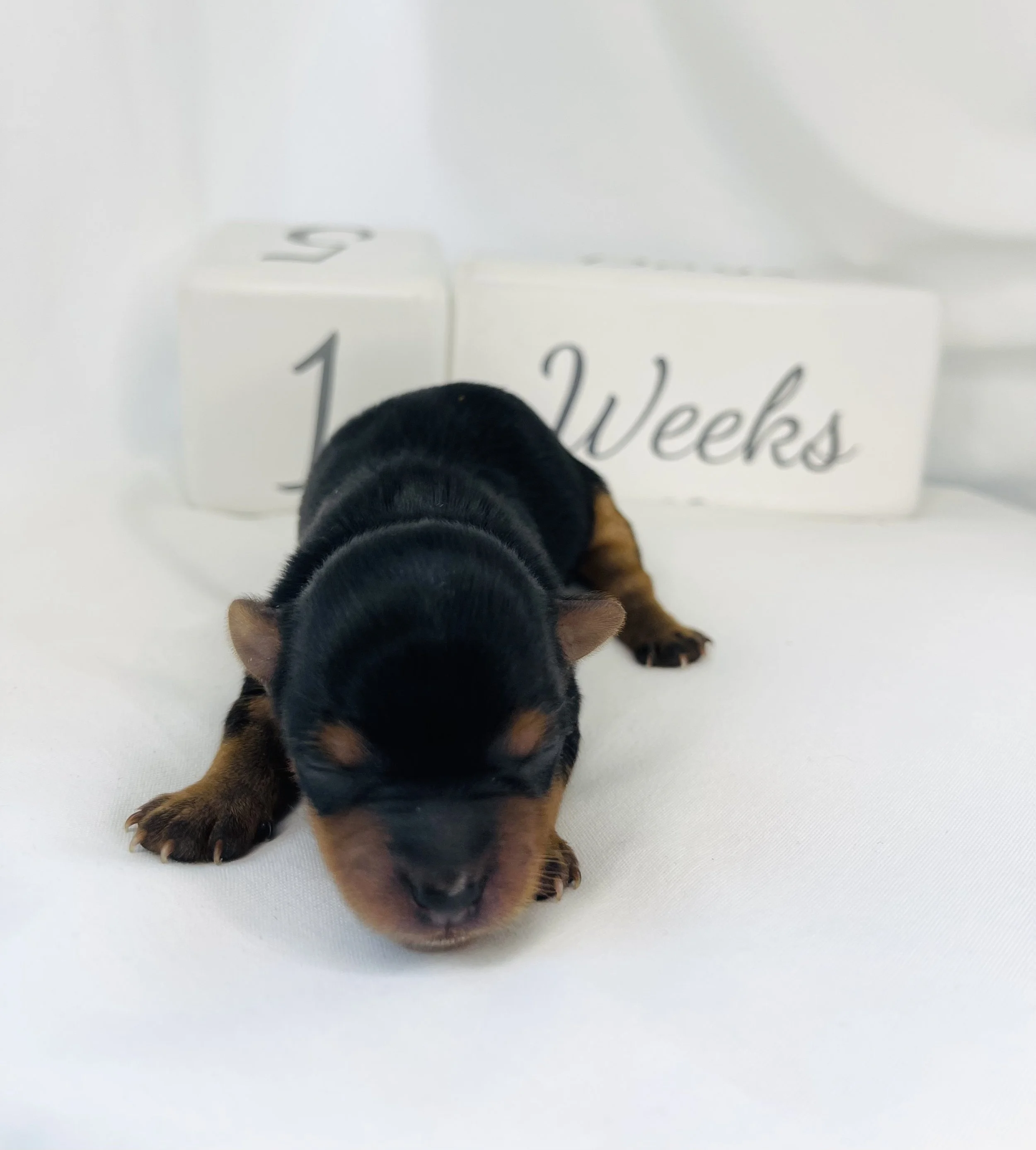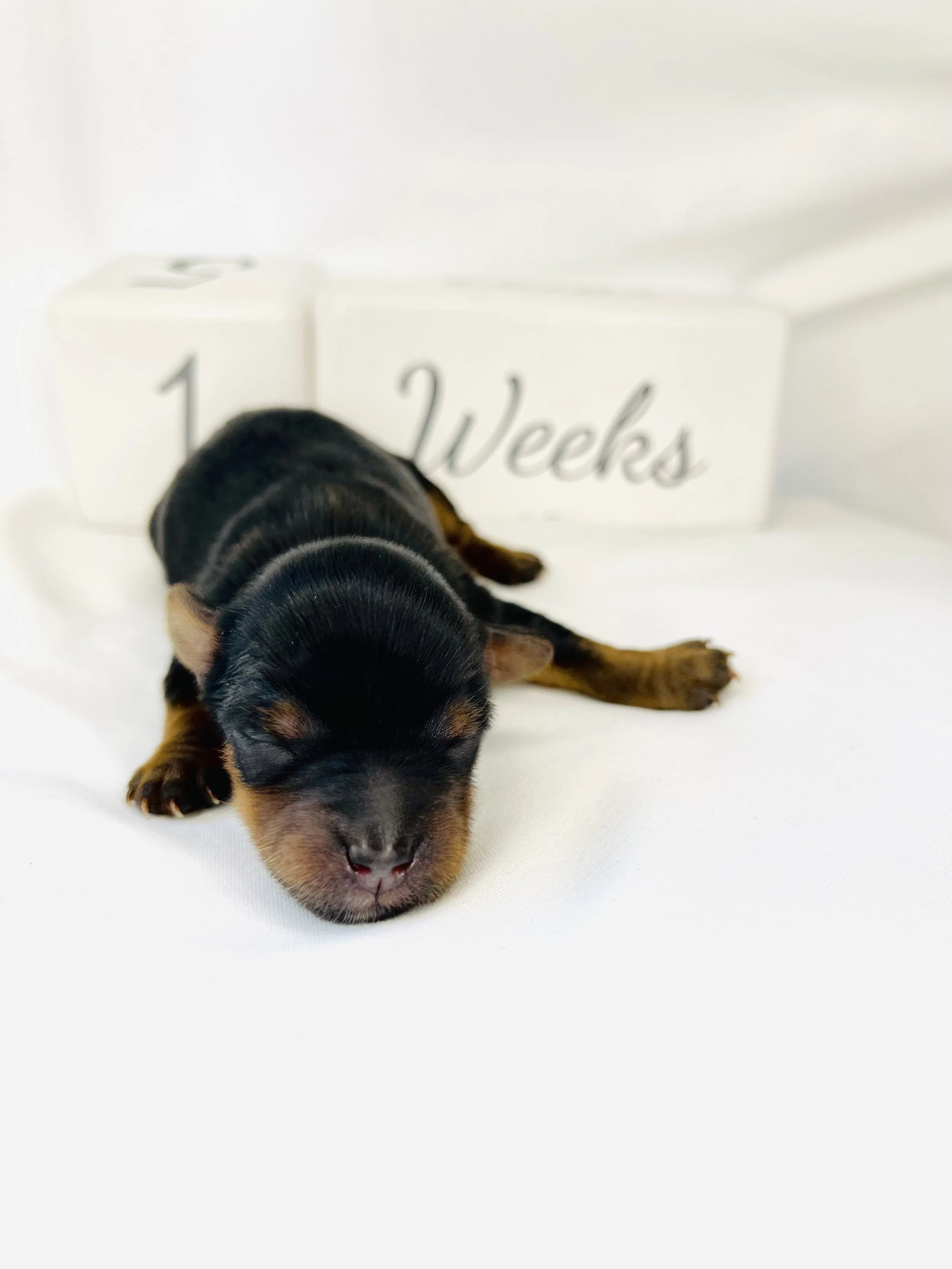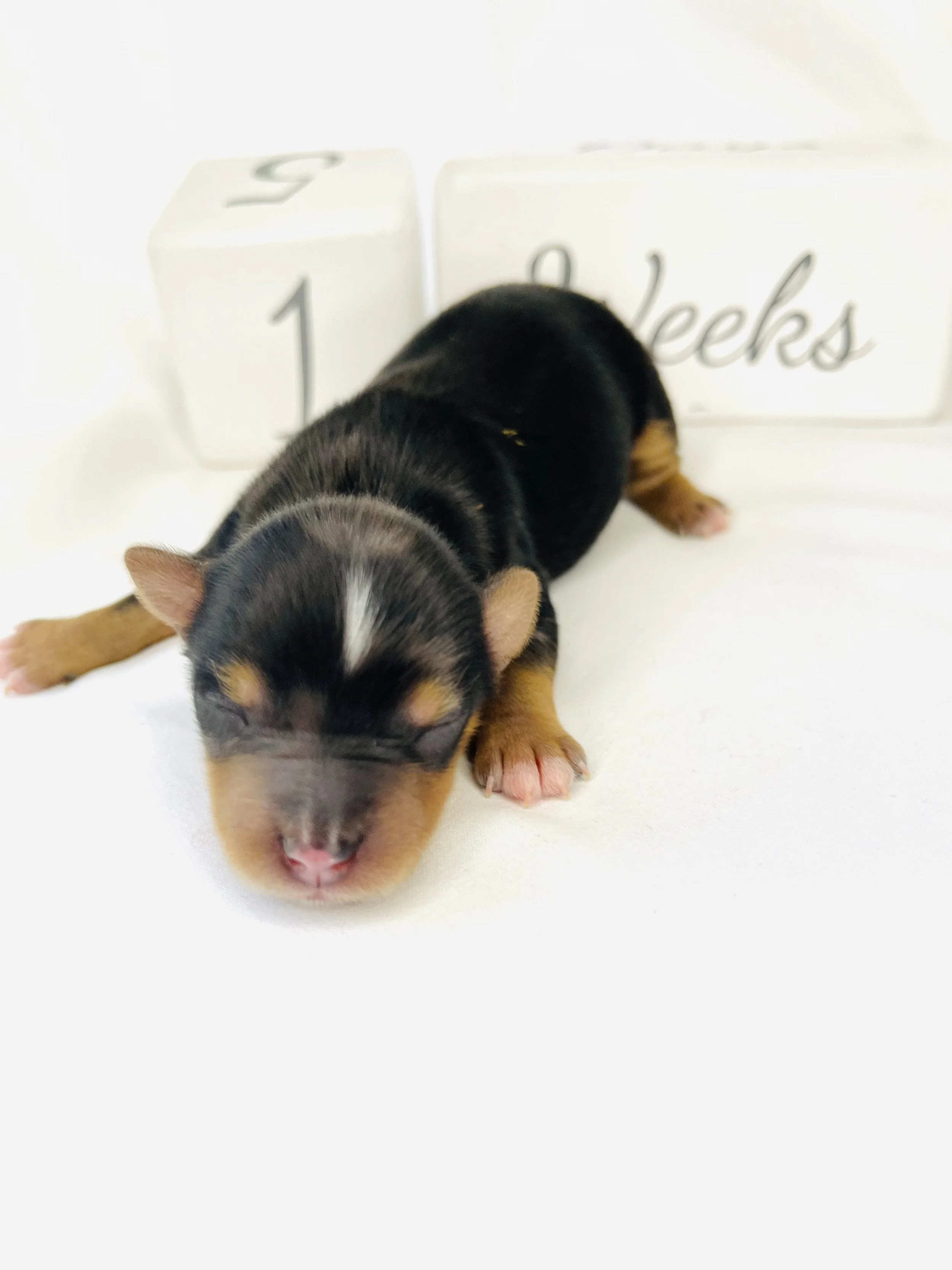 Cooper weighs 5.5 pounds & is a traditional Yorkie. He has the cutest little foxy face & loves people!